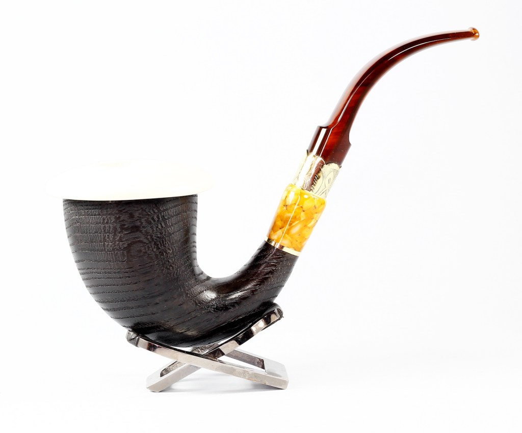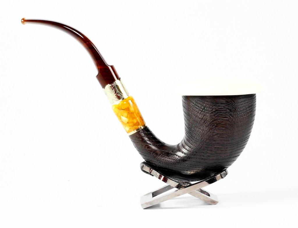 | Stem material | Brass ring with floral engraving, Methacrylate Brown amber | ||