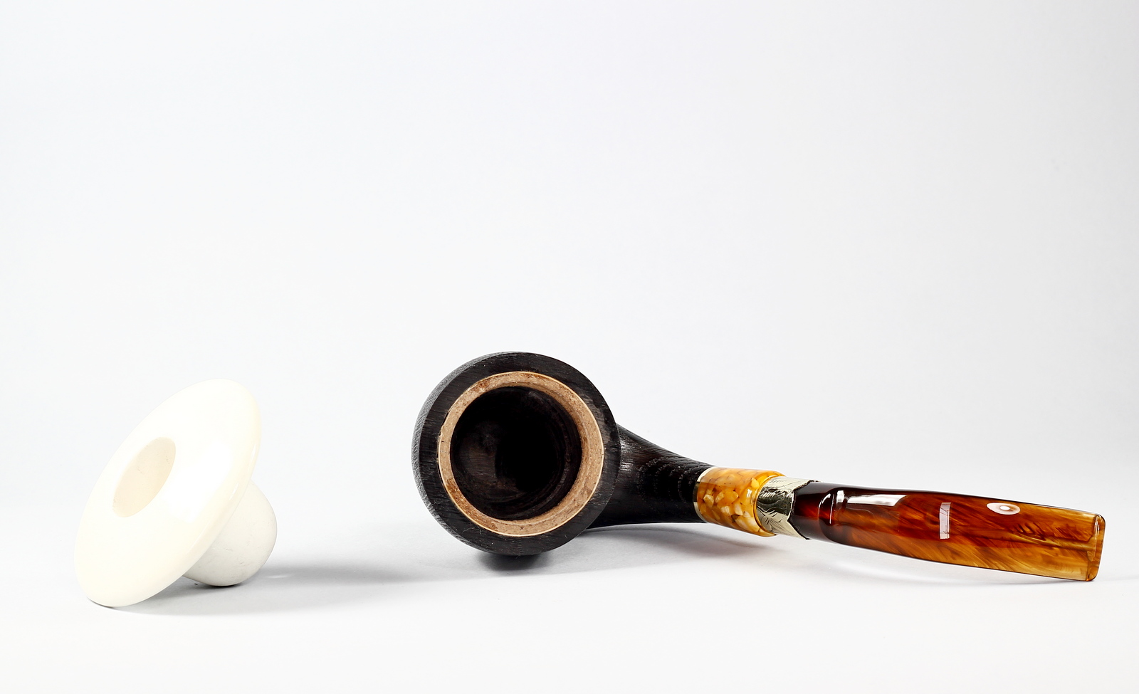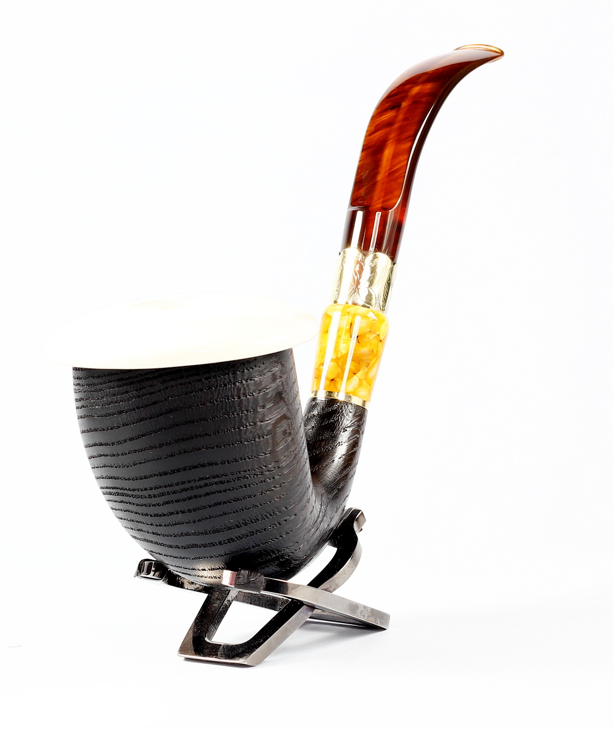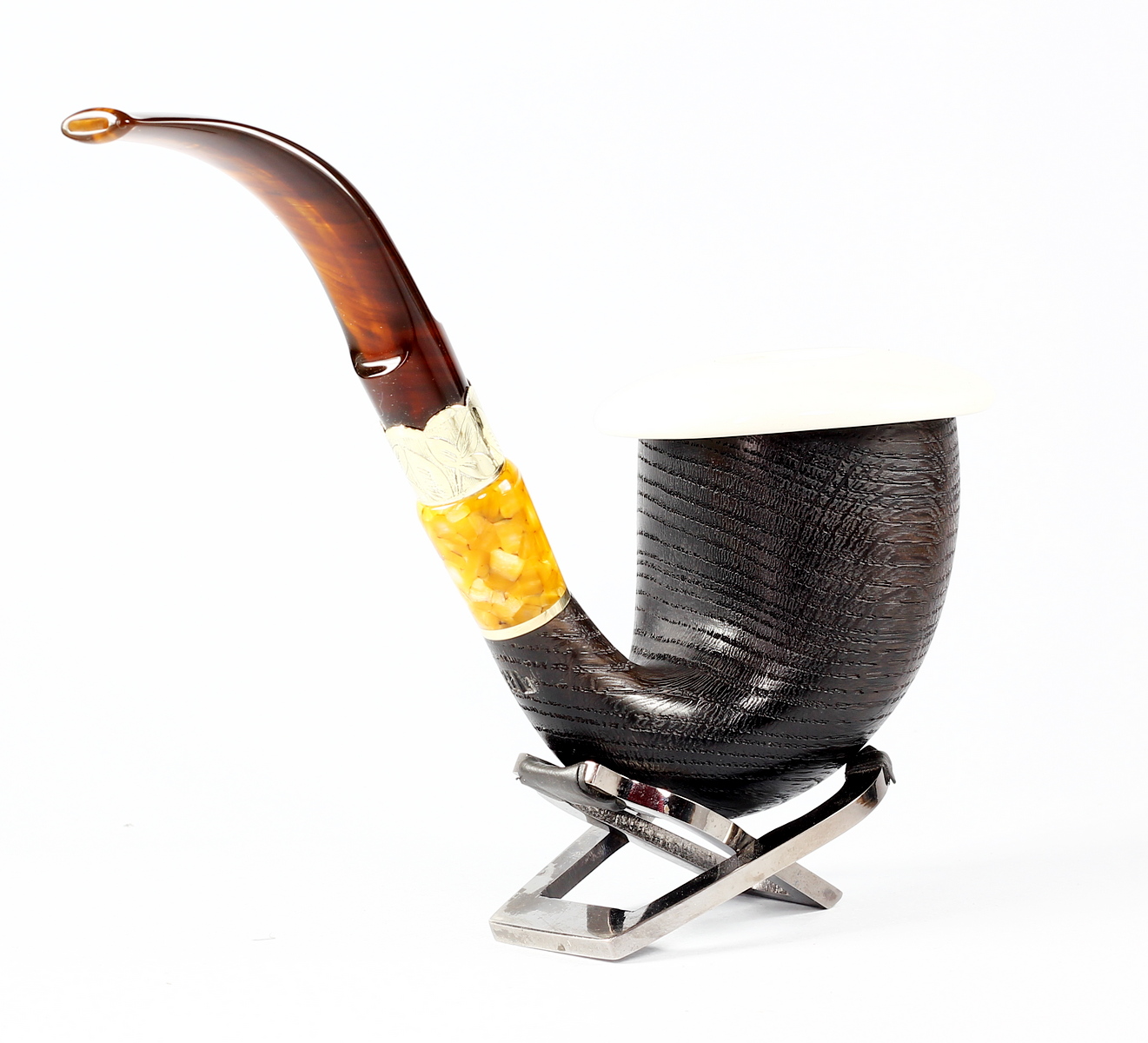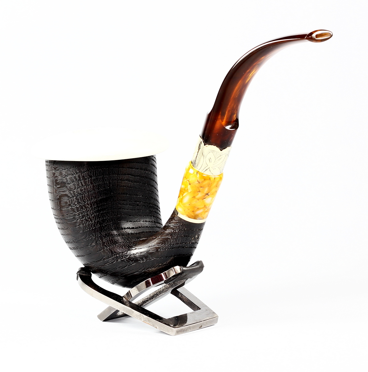 | Stem material | Brass ring with floral engraving, Methacrylate Brown amber | ||
